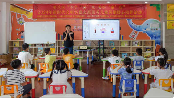 近日,美兰区积极组织动员文明实践志愿服务团队开展“不负‘暑’光,美好‘童’行”为主题暑期系列活动,帮助辖区少年儿童探索知识、开拓眼界,度过一个丰富多彩的暑假。陪伴活动开设“童心墨韵 书香满园”写作课、“童音飘扬 声声入耳”口才课、“童画奇缘 色彩童年”绘画课、“童梦奇迹 科学探趣”科学课等多门课程,既丰富了孩子们的暑假生活,又提升了孩子们的综合素质,让他们在精彩的暑期生活中收获成长,拓宽视野。