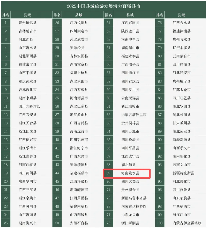 陵水再获殊荣 入选2025中国县域旅游发展潜力百强县市